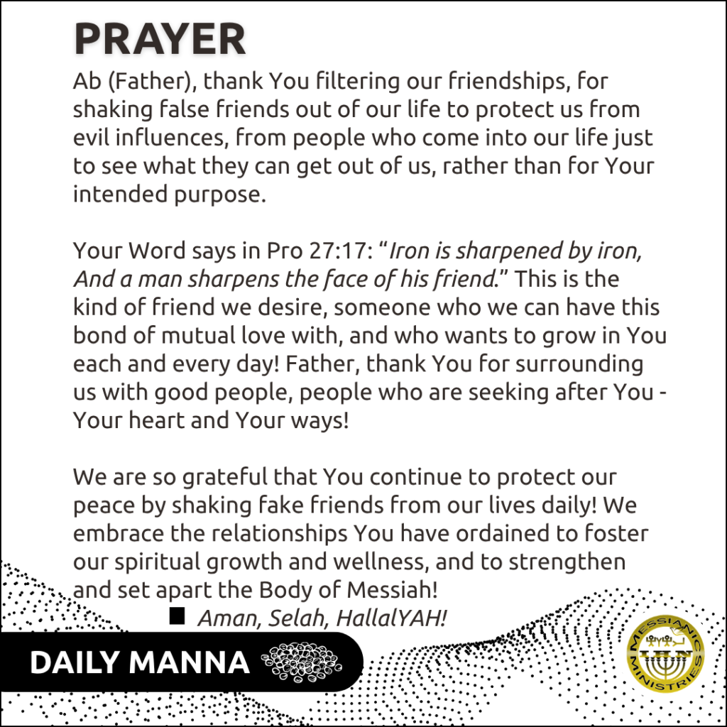 Fake friends are so common these days! But when you come into a relationship with the Father and accept to be His child, one of the things He will do for you is to shake those fake friends from your life! He Himself guards our peace (shalum) by keeping us surrounded by the right alliances, while pushing away the people who don’t belong in our lives!