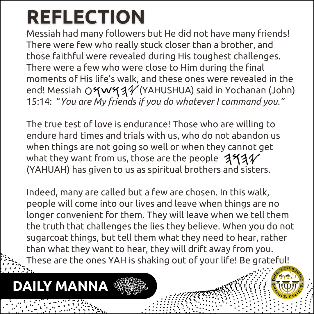 Our best friend is YAH! He is the only one who is always there; He will never fail us nor forsake us; He will send us the right friends in this walk; He will guard us In His Name forever!