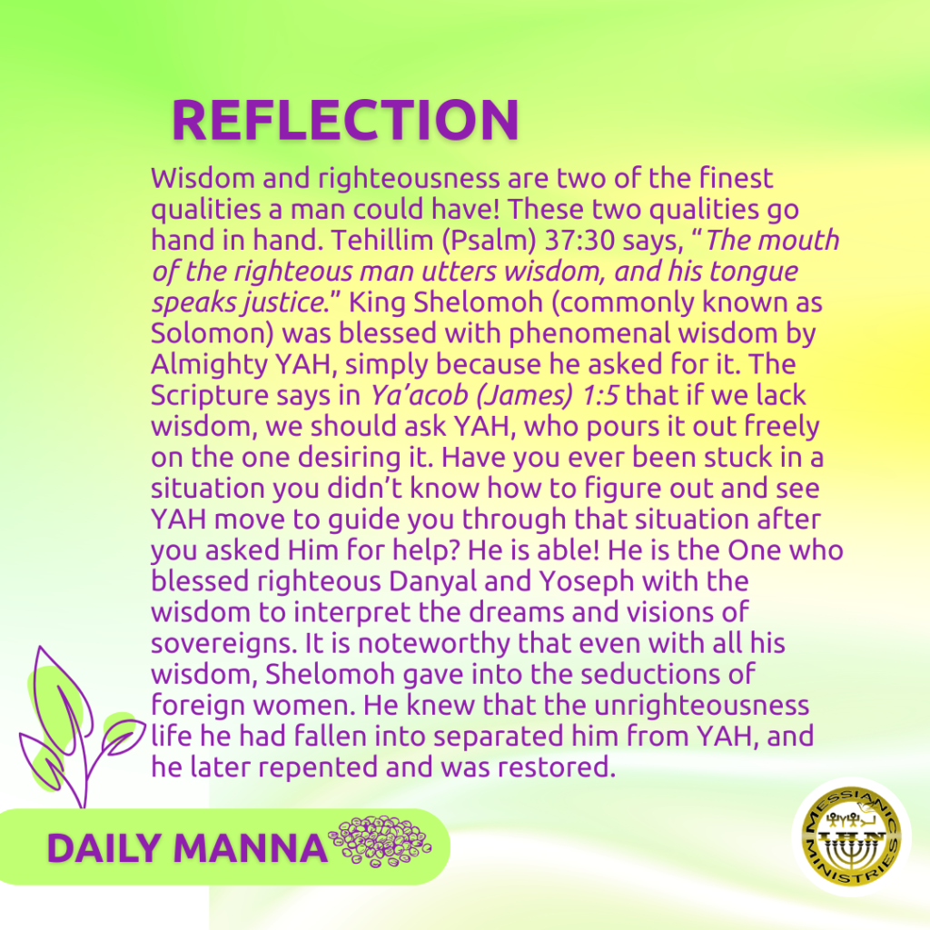 Modern technology and the internet have made it so easy for people to fall into the folly of sorcery and witchcraft – seeking out false wisdom, which leads to unrighteous living. If we want our Heavenly Father to rejoice over us and delight in our ways, then we need to seek true wisdom, which comes from the Father of lights. Iyoḇ (Job) 12:16 declares that, “True wisdom and power belong to Him.” Do we want to run the risk of grieving our Loving Father by seeking after false wisdom that leads us astray? Our only safeguard is to stand the righteousness of our Savior, 𐤉𐤄𐤅𐤔𐤅𐤏 (YAHUSHUA) the Messiah. According to Romans 3:26, YAH declares the one who has belief in Messiah to be righteous. Let’s stay in the Vine, so that we can continue to stand in Him always!