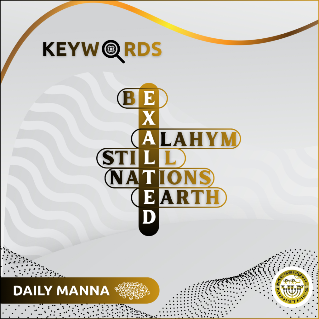 “Be still and know that I am Alahym; I will be exalted among the nations, I will be exalted over the earth.”