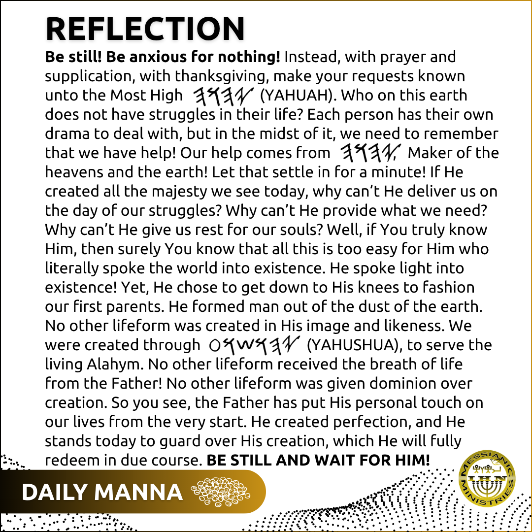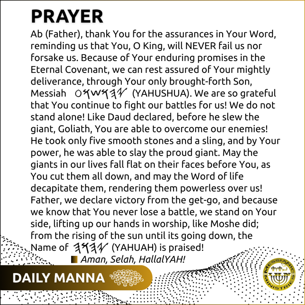 We’ve heard the battle cry, but today, we do not fret! We stand firm! “Be still before 𐤉𐤄𐤅𐤄 and wait patiently for Him; do not fret when men prosper in their ways, when they carry out wicked schemes,” says Tehillim (Psalm) 7:7! Shemoth (Exodus) 14:14 says, ” 𐤉𐤄𐤅𐤄 will fight for you; you need only to be still.”