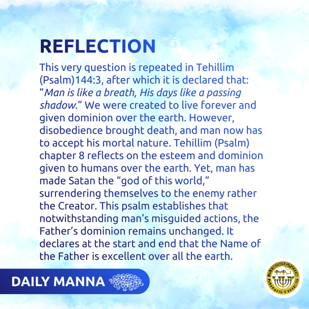 For I behold Your heavens, the work of Your fingers, the moon and the stars, which You have set in place—what is man that You are mindful of him, or the son of man that You care for him?