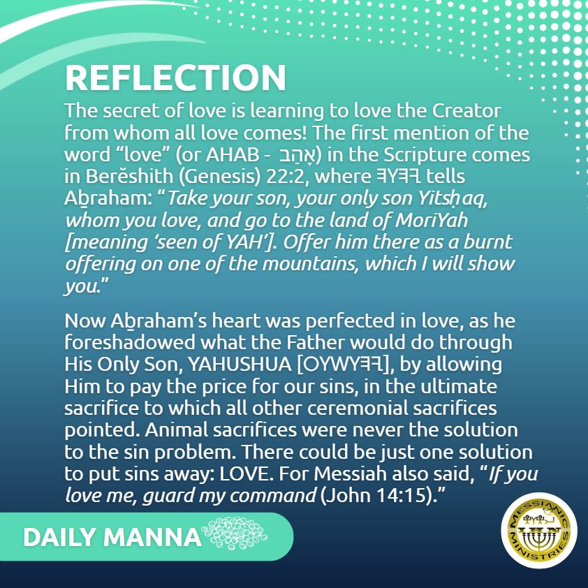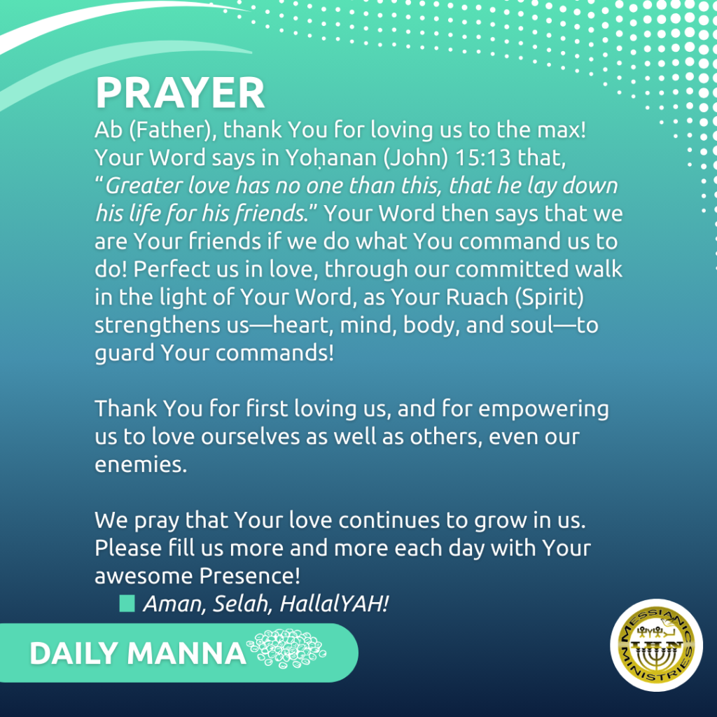 Yoḥanan (John) focuses much of his teachings on the theme of love! A key chapter is Yoḥanan 15, in which Messiah introduces the parable of the vine. He says that He is the True Vine, and we should abide in Him and bear fruit. By the end of this talk, He reinforces the importance of love, which is the underlying theme for the entire body of commandments given to Moshe in the wilderness. Some of these commandments were temporary and ceremonial, pointing forward to the greatest manifestation of love of all time: YAH’s giving of His Only Son, in place of us, pardoning us from sin and the second death, which is the fate of the unrepentant. Messiah focuses our attention on what it truly means to stay in the vine, to remain in His love, and to love each other, just as He has loved us.