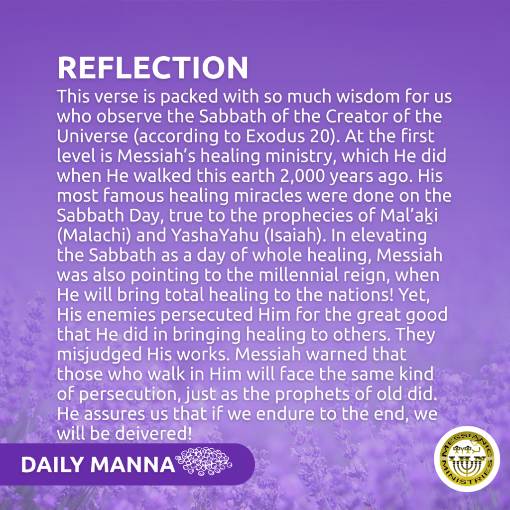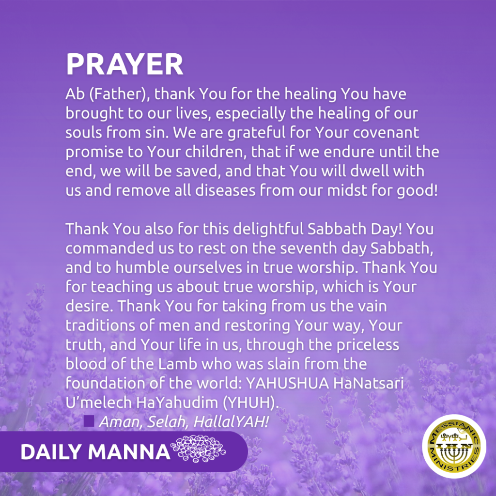 There is so much suffering in this life, and diseases are becoming more common as many we know are falling ill and dying too early! But all this will change very soon! The prophet Mal’aḵi wrote: “But for you who fear My Name, the Sun of righteousness will rise with healing in its wings, and you will go out and leap like calves from the stall (Mal 4:2 ).” He was prophesying about the healing that Messiah would bring to the nations. During his 3.5 years of ministry on this earth, approximately 2,000 years ago, Messiah gave us a foretaste of the ultimate fulfillment of this prophecy. Many were reaching out to touch the hem (tzitzit) of His garment, as the prophecy said that there would be healing in His wings (or the edges of his garment, bordered with tassels). The final fulfillment will come at the end of the age, when “‘He will wipe away every tear from their eyes,’ and there will be no more death or mourning or crying or pain, for the former things have passed away (Rev 21:4).” The prophet Yochanan (John) said in Rev 22:2 that, “…On either side of the river stood a tree of life, bearing twelve kinds of fruit and yielding a fresh crop for each month. And the leaves of the tree are for the healing of the nations.”
